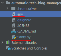 # tistory.py from dotenv import load_dotenv import os load_dotenv() app_id = os.environ.get("APP_ID") secret_key = os.environ.get("SECRET_KEY")